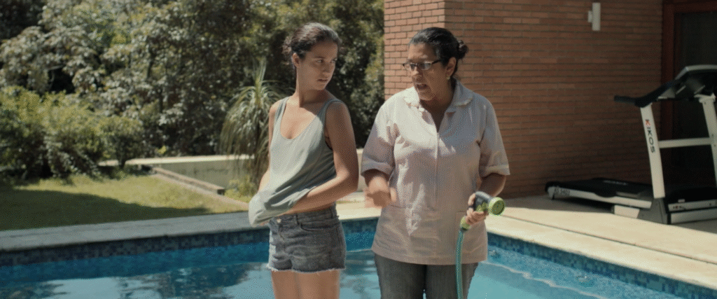 Regina Casé da vida a Val, una madre amorosa con el hijo de sus patronos adinerados para los que trabaja y que se tuvo que separar de su hija para enviarle dinero y poderle ofrecer una educación emancipadora. Todo se trastoca cuando la hija de Val, Jessica, que es de la misma edad que el hijo del matrimonio, decide visitarla. No acepta el lugar degradado de su madre y la supuesta insolencia de la joven hará que Val se replantee algunas cuestiones. La interpretación de la protagonista es grandiosa y la escena de la piscina podría ser una señal de empoderamiento. Su sencillez, ternura y espontaneidad hacen que la adores desde el minuto uno.