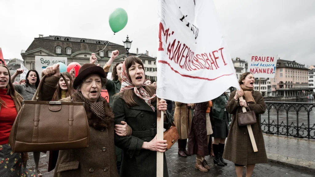 Nora (Marie Leuenberger) vive en un pueblo donde todo está en su sitio, nada se altera, el orden de las cosas continúa intacto. Es madre y ama de casa, Y con eso es suficiente. Un día una mujer la aborda en la calle con folletos informativos para la liberación de la mujer, pero ella asegura que no la necesita. La mujer se enfada puesto que esta liberación es para todas y por ello todas deben estar unidas para conseguirla. Nora poco a poco empieza a tomar conciencia del lugar que ocupa por su sexo y lo que se espera de ella. Posiblemente se sorprenderá de las acciones que va a emprender a partir de ese momento, tomando decisiones que afectan a su propio hogar, ya que ninguna revolución puede olvidarse del espacio privado, que también es político. Ha leído La mística de la feminidad de Betty Friedan y a partir de ahí se une a otras mujeres para invertir el injusto orden establecido. Lo siguiente es un cambio físico que le muestra a una nueva mujer que ha nacido para no dar marcha atrás a pesar de las dificultades. Una huelga feminista lo cambiará todo. Hay momentos emotivos, cómicos y sobre todo una narración que nos conduce por la lucha por el voto de las mujeres en un lugar que se creía avanzado dejando a la mitad de la humanidad atrás.