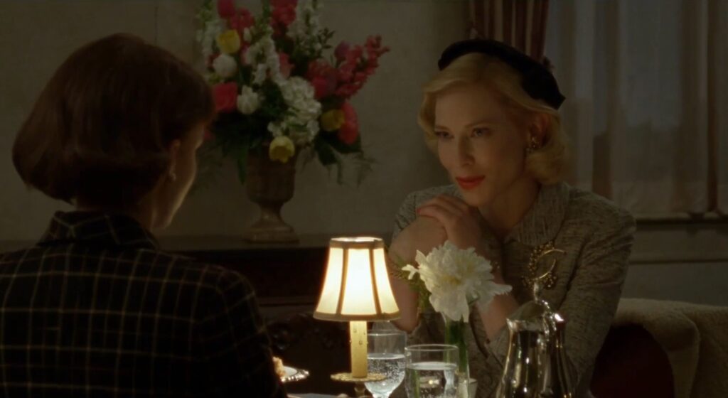 Estamos en una Navidad de los años 50 y Carol Aird (Cate Blanchet) va a unos grandes almacenes para comprar un juguete a su hija. Allí le atiende Therese Belivet (Roonye Mara) y tras ese encuentro se prende algo que después se desarrollará. Las interpretaciones de estas dos actrices son sublimes. Y aquí he de destacar la sensibilidad del director en saber plasmar la historia.